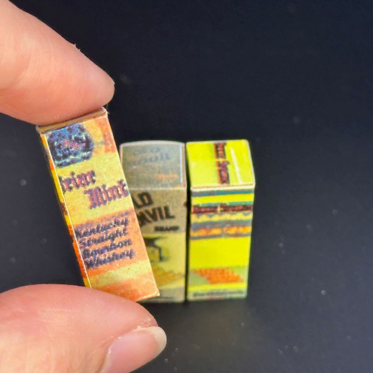 3 Stk. Weinflaschen aus Holz für Puppenhausminiatur im Maßstab 1:12