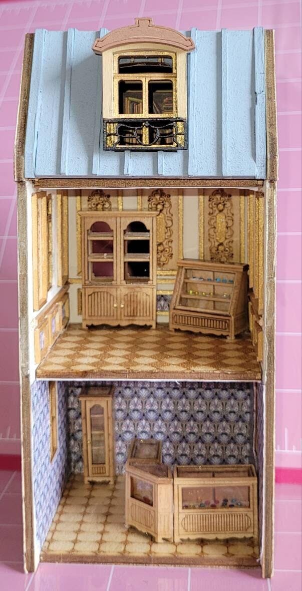 These display furniture pieces are adorable. The doors in the back open and give access to add tiny mechandise. Perfect for this shop.