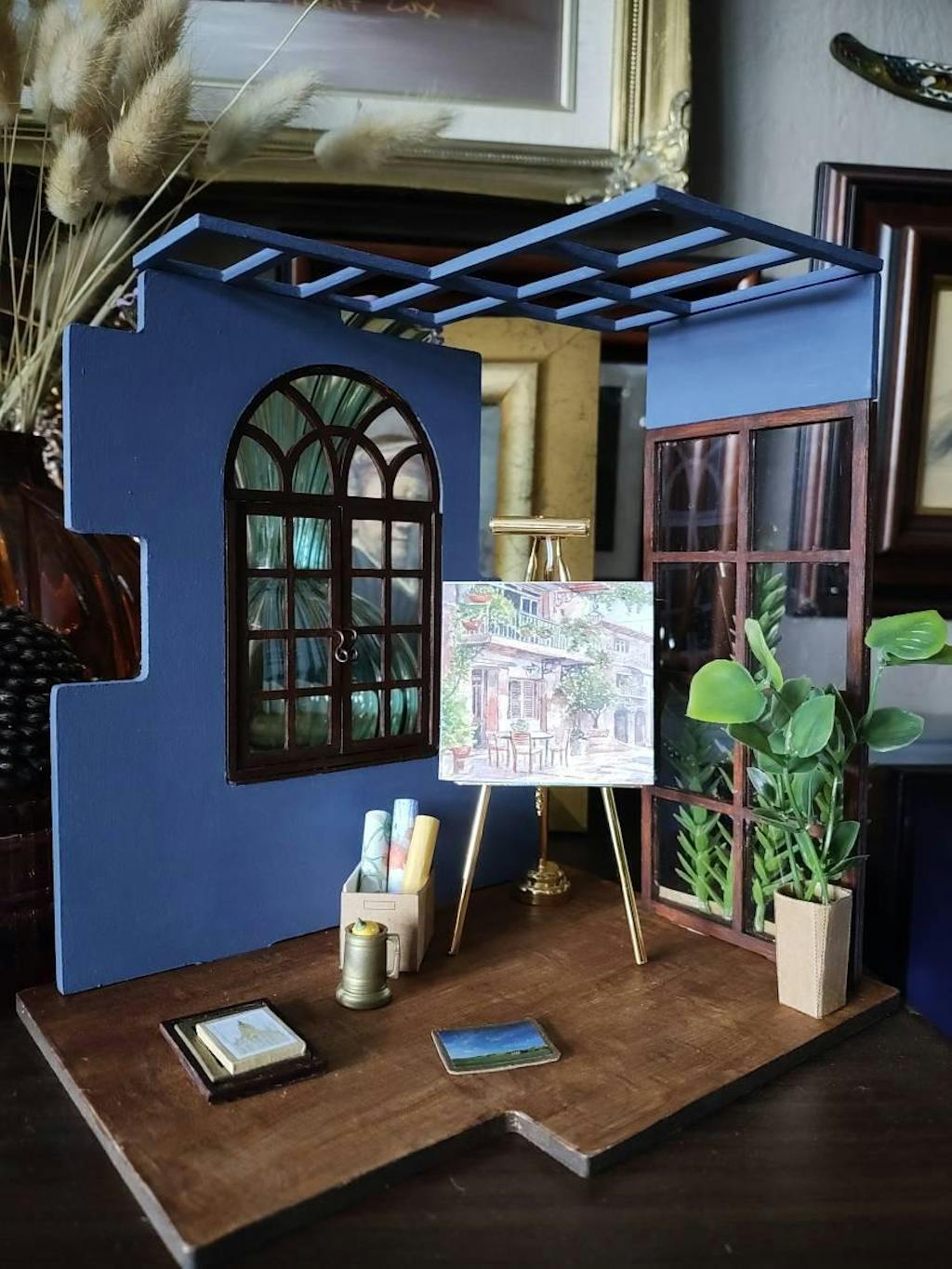 This easel is absolutely fabulous to look at without the light on, but with the light on, it's a complete game changer, it looks phenomenal. The construction is quality throughout and looks very expensive, I love it. I bought it to put in a sort of room/diorama, but will probably buy more as I'm planning a whole studio in miniature. It is well worth the money paid. Postage was very quick and very reasonably priced. Just to add did I say how much I love it, just saying.