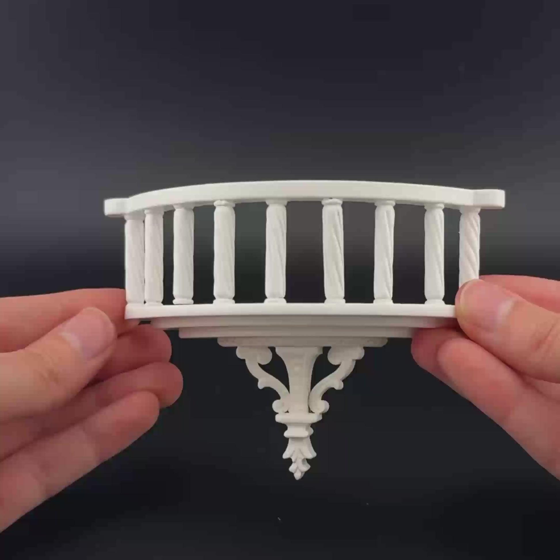 Ce balcon est assemblé, peint et prêt à être installé sous ou autour de l'extérieur de la plupart des fenêtres de maison de poupée simples.