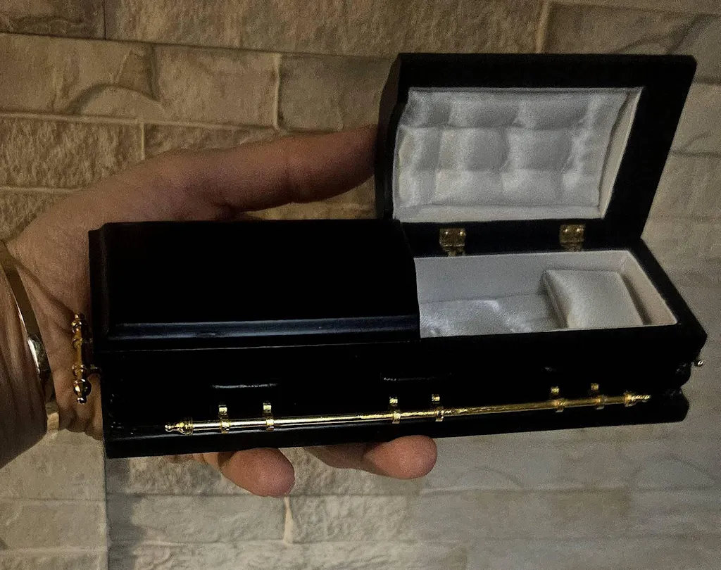 1:12 Wooden miniature coffin casket BLACK color with Brass metal rod handles for dollhouse Funeral buried