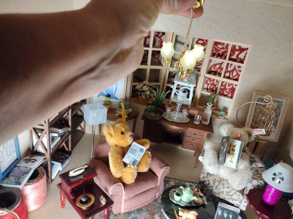 Lighting your dollhouse is extremely simple with our battery-operated lighting system.