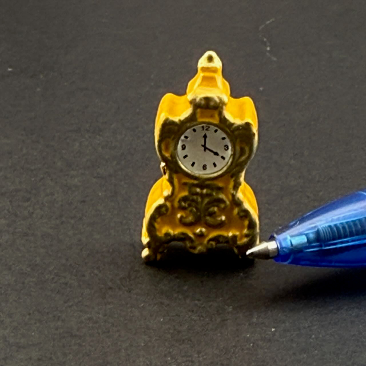 This charming yellow and blue clock miniature, crafted to a precise 1:12 scale, adds a delightful touch of realism to any dollhouse. Its vibrant colors and detailed design make it an eye-catching centerpiece, perfect for enhancing your miniature décor. Ideal for collectors and hobbyists seeking to bring authentic charm and color to their scenes.