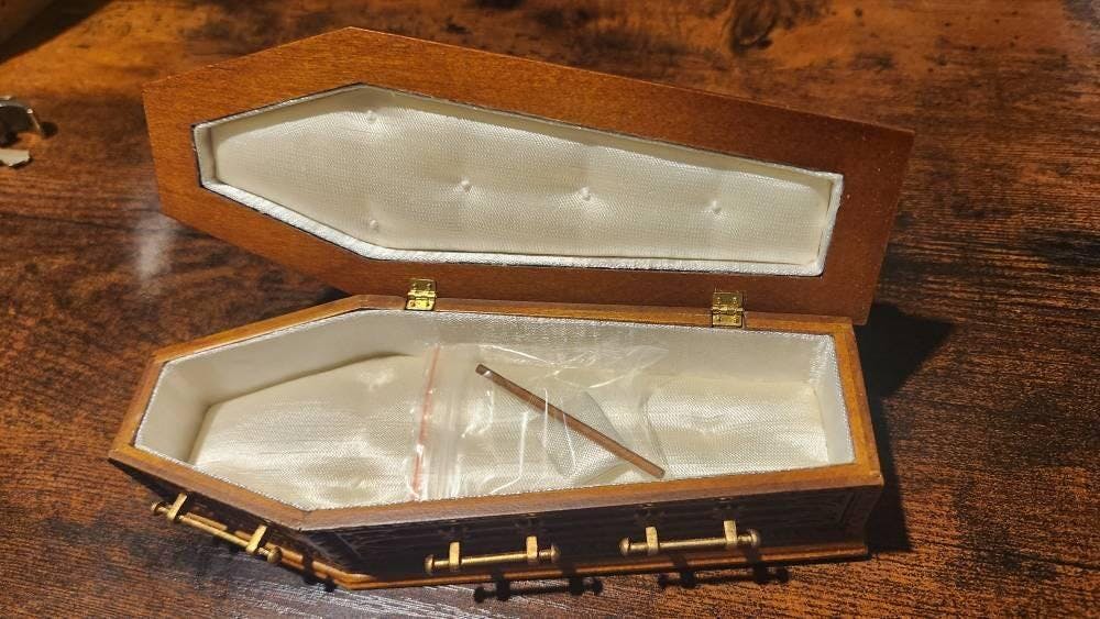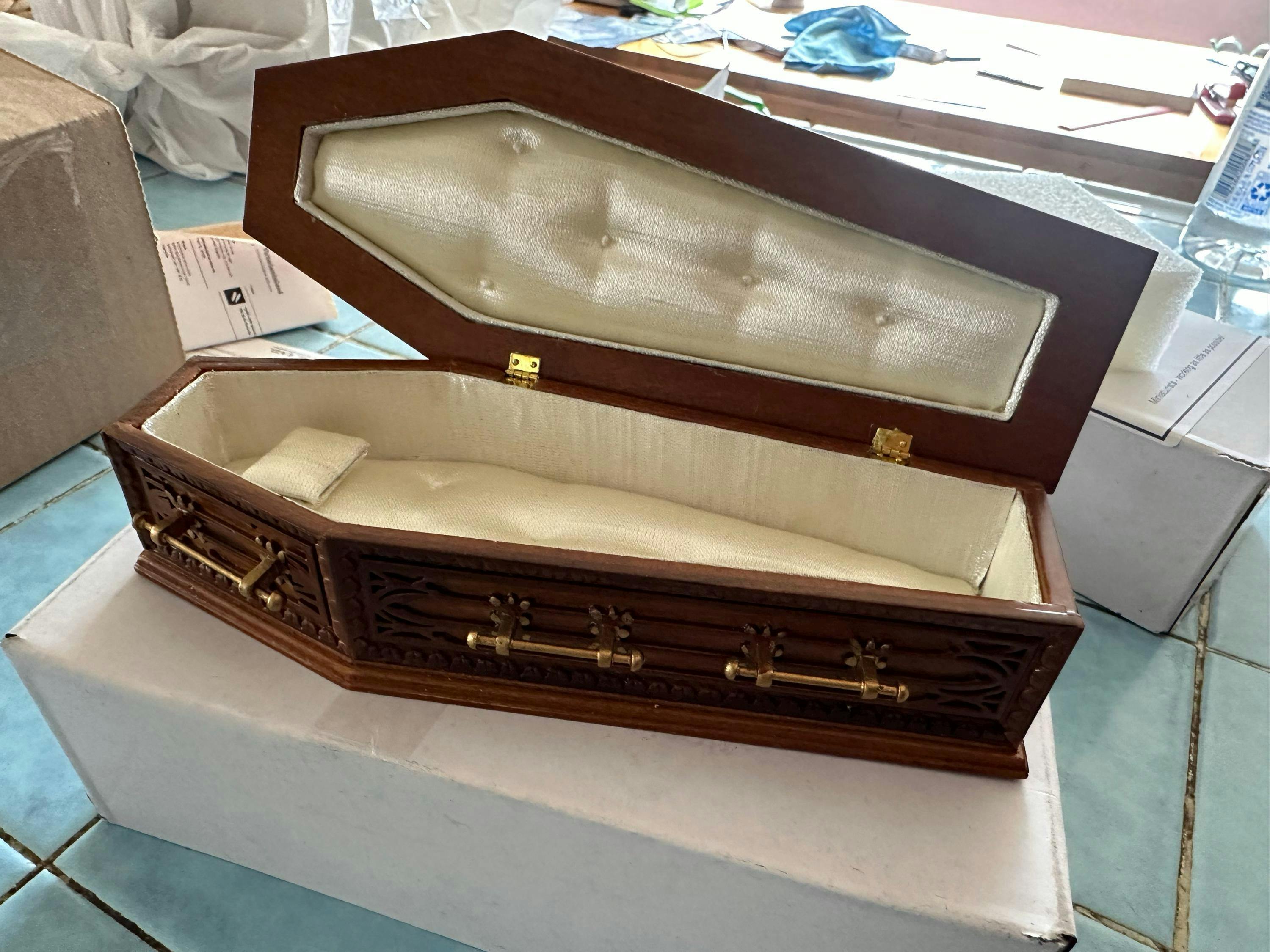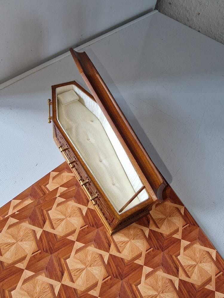 Coffin WN wood top Dollhouse miniature 1:12 scale fit Heidi Ott dolls funeral