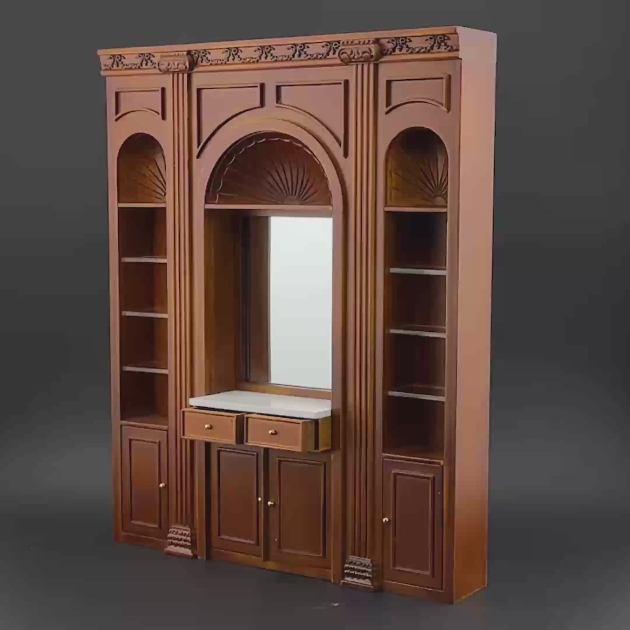 1:12 Miniature Manor Multi-Purpose Panel – Versatile Storage Unit with Shelves, Drawers & Mirror – Dollhouse Furniture
