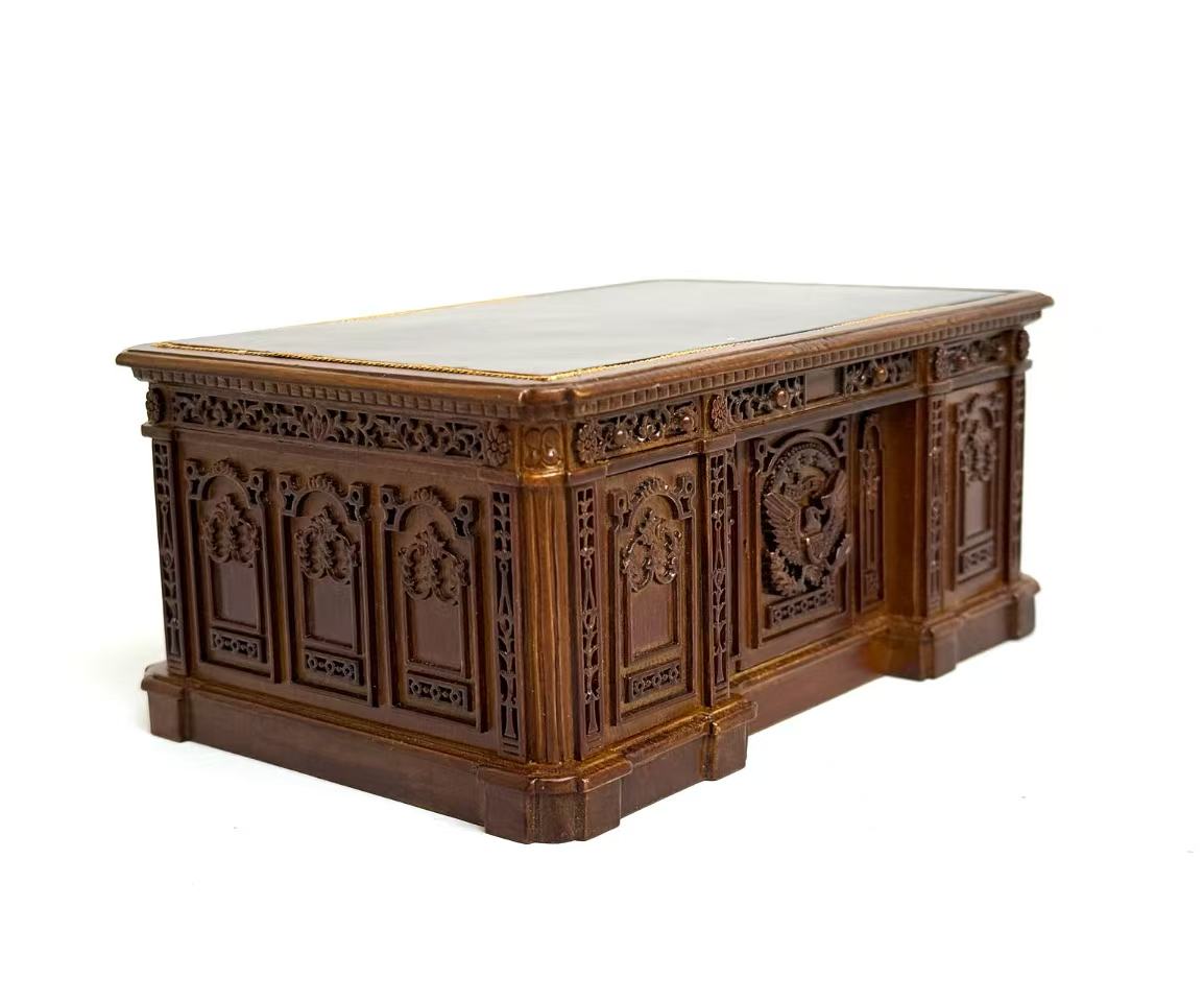 This miniature Resolute Desk set brings the elegance and legacy of the Oval Office into your home, crafted with care and attention to detail for collectors and hobbyists alike.