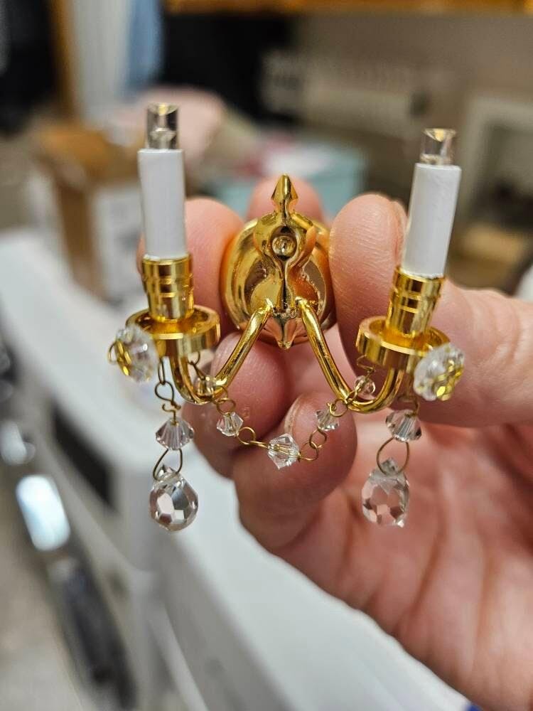 Etsy customer Crystal sconce candles candle regal decorated 2 arms LED LAMP Dollhouse miniature light battery on/off switch super bright