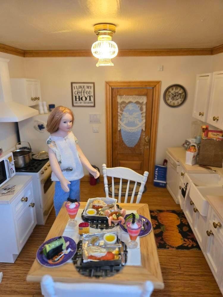 Fancy Shade Ceiling Lamp LED Super bright with On/off switch 1:12 dollhouse miniature 1"w x 1.25"H battery operated