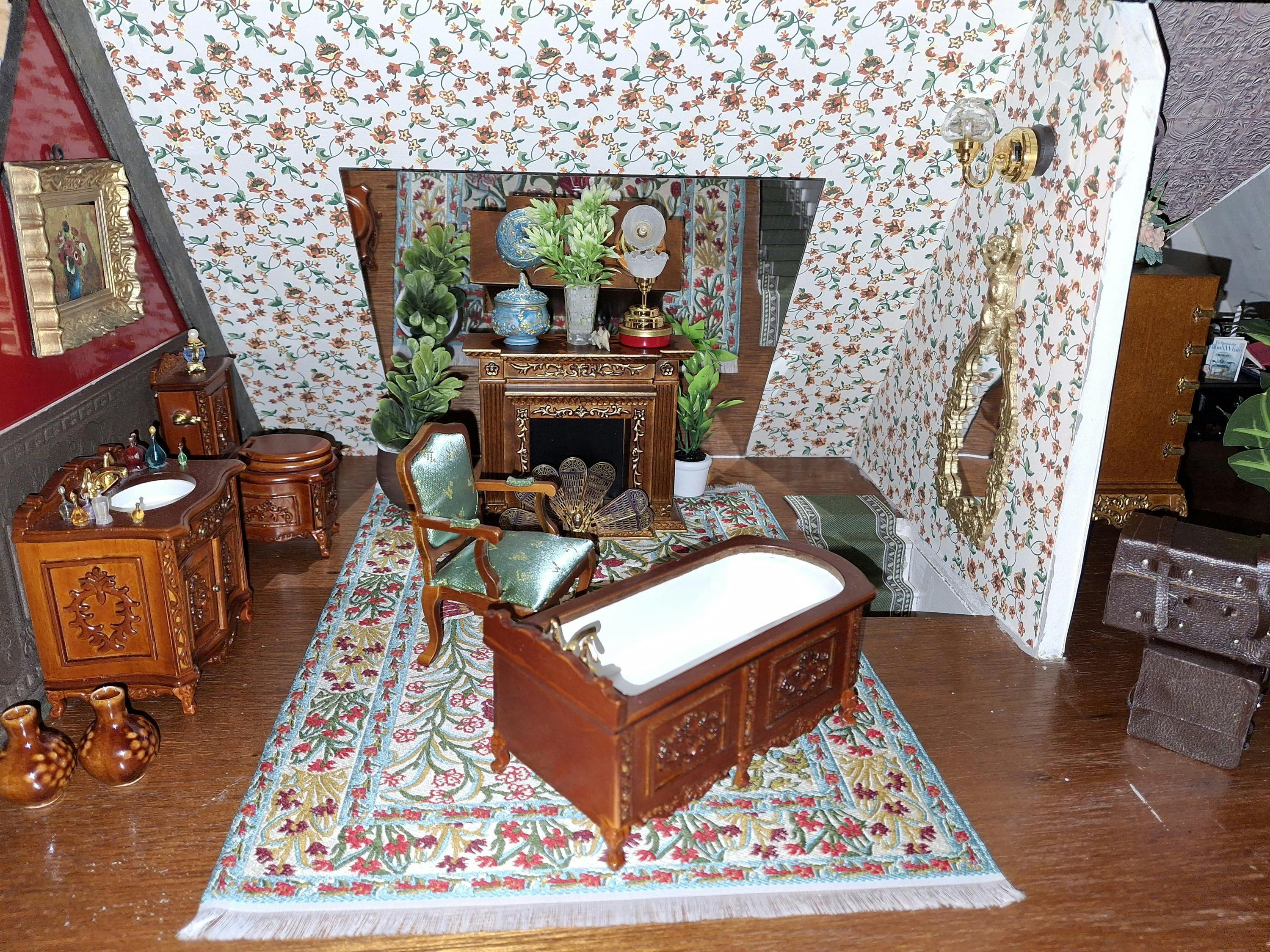 Elevate your dollhouse décor with this exquisitely handcrafted Victorian fireplace, designed at a precise 1:12 scale. Made from fine walnut wood with elegant gold detailing, this miniature piece combines timeless craftsmanship with sophisticated design, adding authenticity and charm to any dollhouse setting.