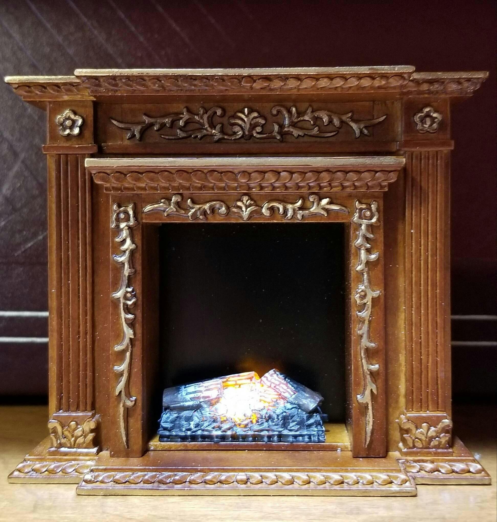 Fine Quality Victorian fireplace for Dollhouse miniature 1:12 Walnut / gold handcrafted wood Y9512WN