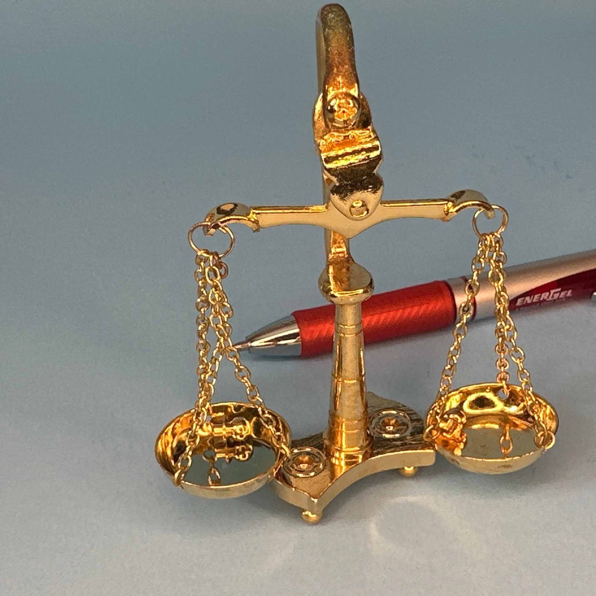 A beautifully crafted set of golden balance scales, perfect for enhancing any dollhouse scene. This elegant miniature includes two additional weights, adding a realistic and decorative touch. Ideal for display in a study, shop, or apothecary setting, it brings sophistication and charm to your collection.