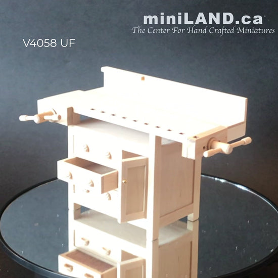 Today we are excited to introduce our unique French Country Carpenter’s Workbench. Welcome to Miniland.ca…..your home for handcrafted miniatures.