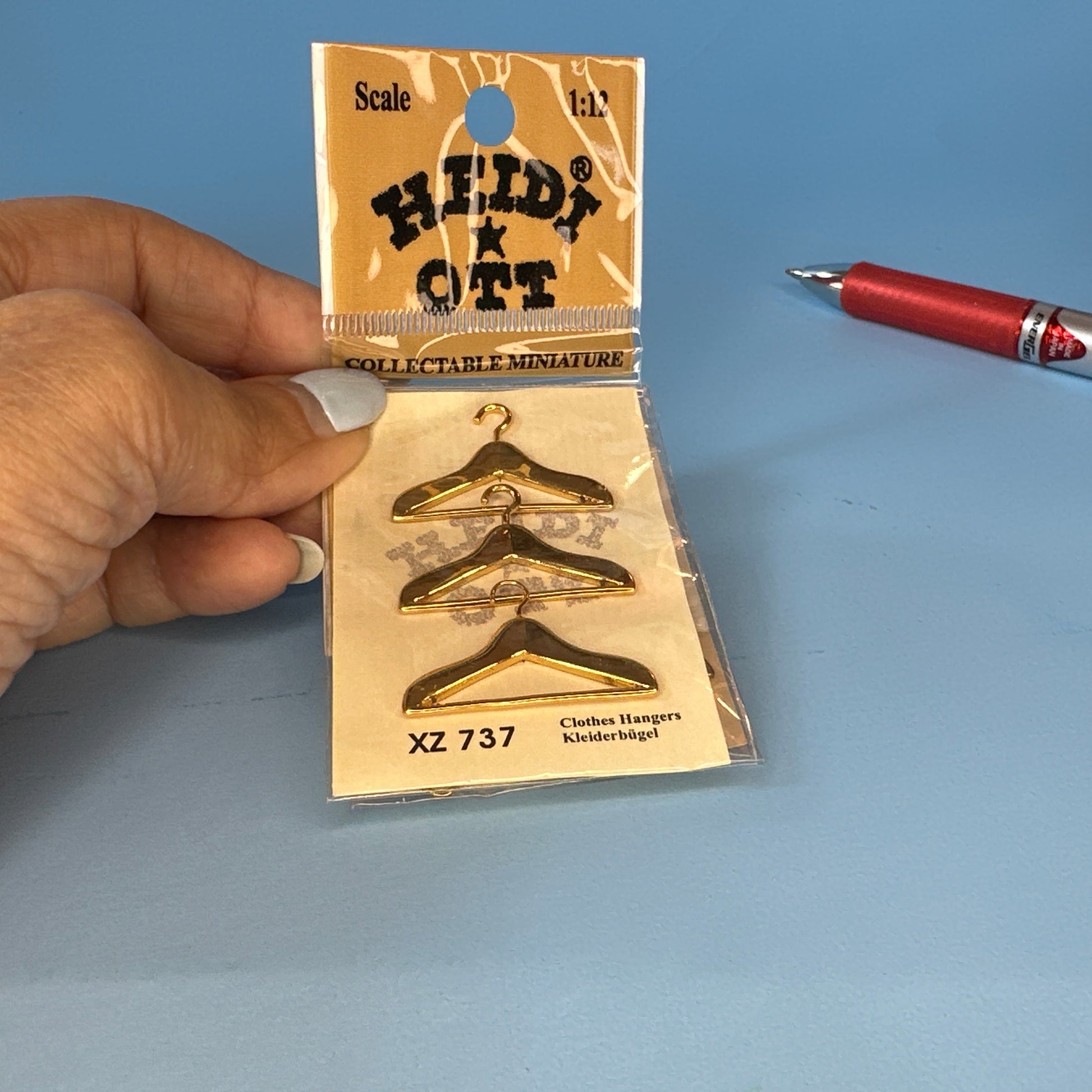 Heidi Ott Dollhouse Miniature Golden Clothes Hangers – Set of 3 (1:12 Scale)