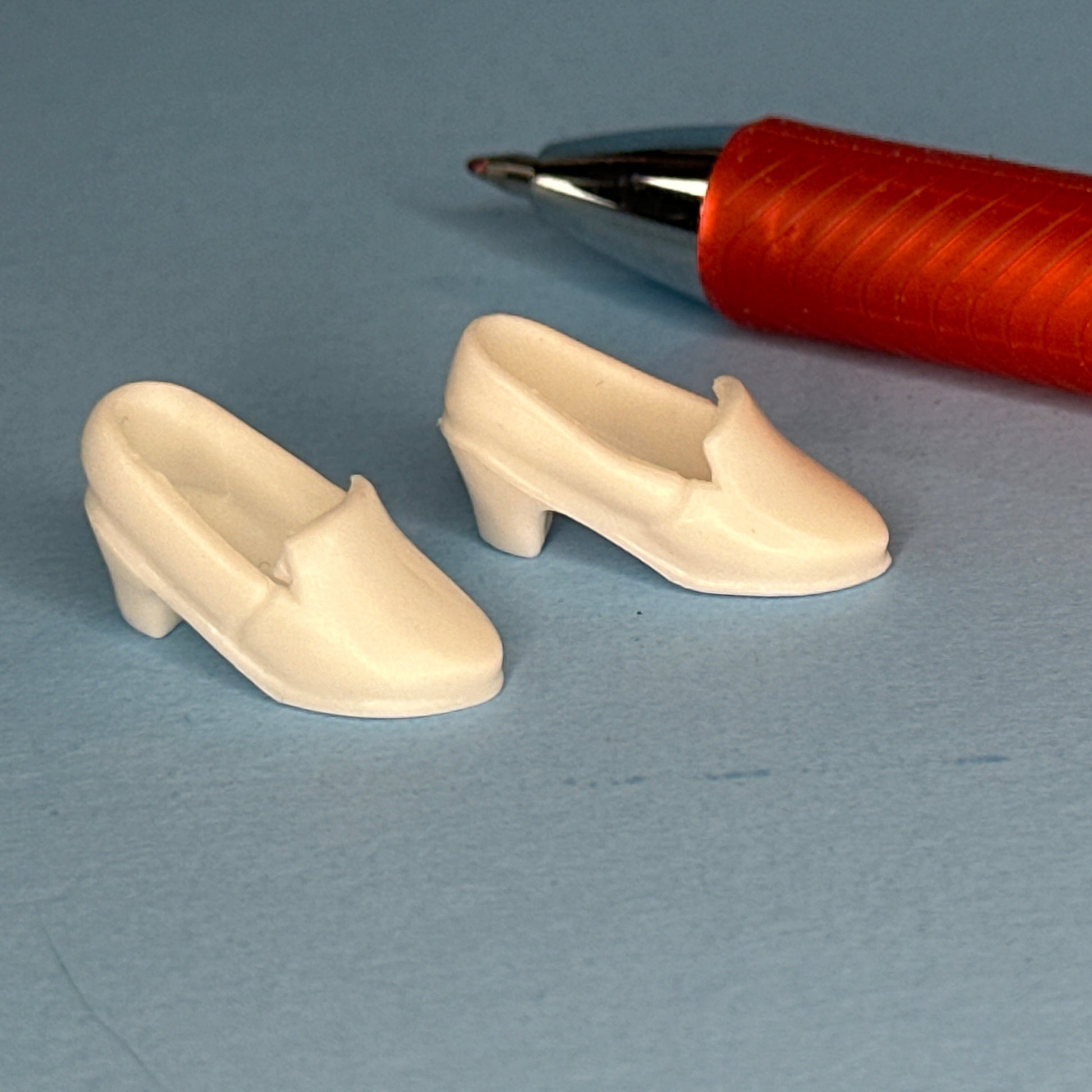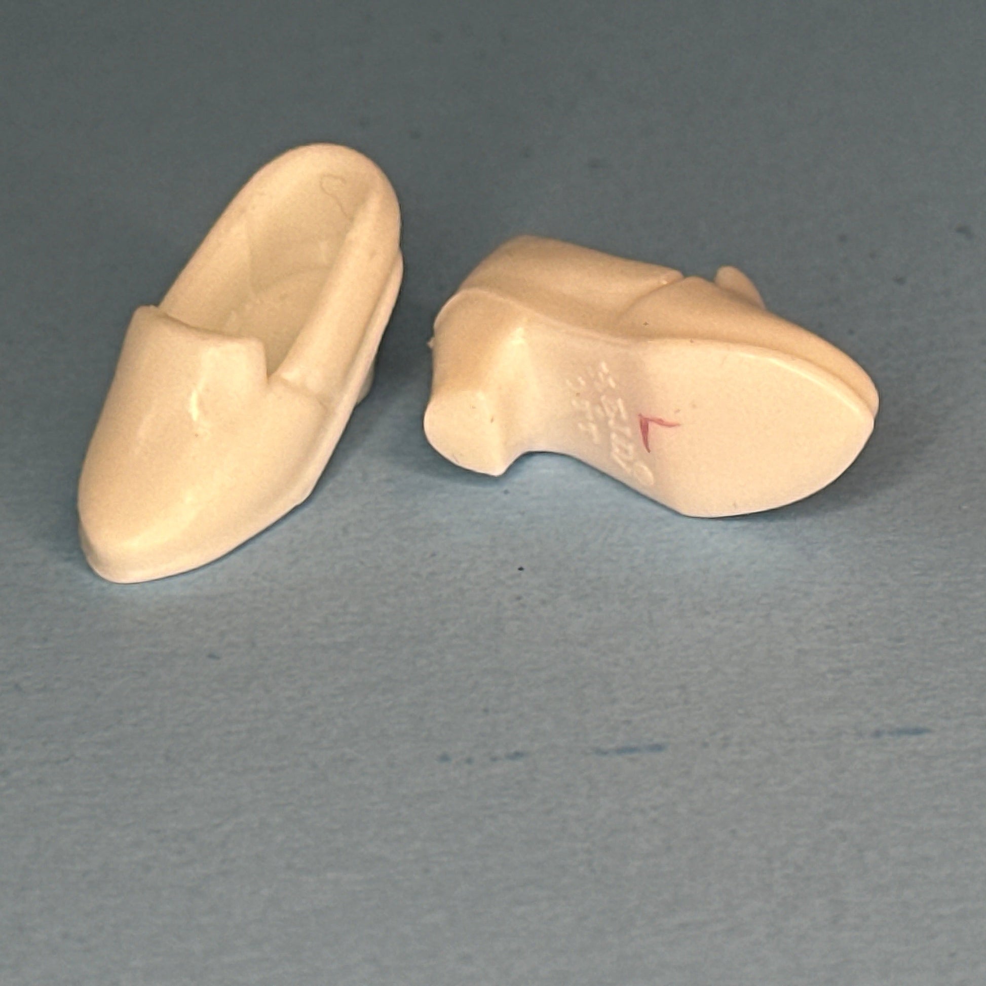 A charming pair of white high heels by Heidi Ott, designed for 1:12 scale dolls. Made of rubber, each shoe measures approximately 2 cm in length. Perfectly sized for Heidi Ott dolls or other 1:12 scale figures, these cute miniature heels add elegance and style to any dollhouse wardrobe or display.