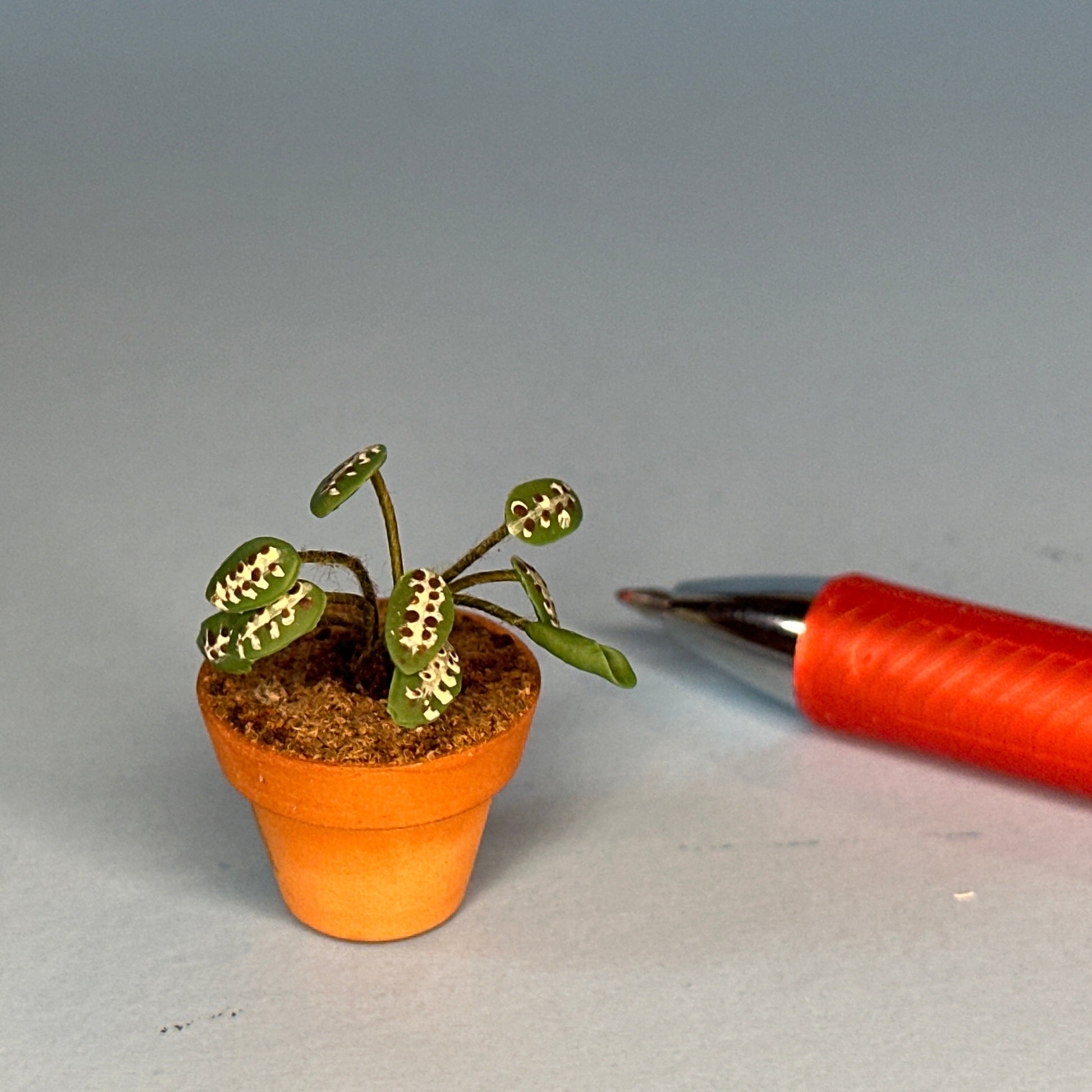 House potted green houseplant plant pot for dollhouse miniature 1:12 Calathea