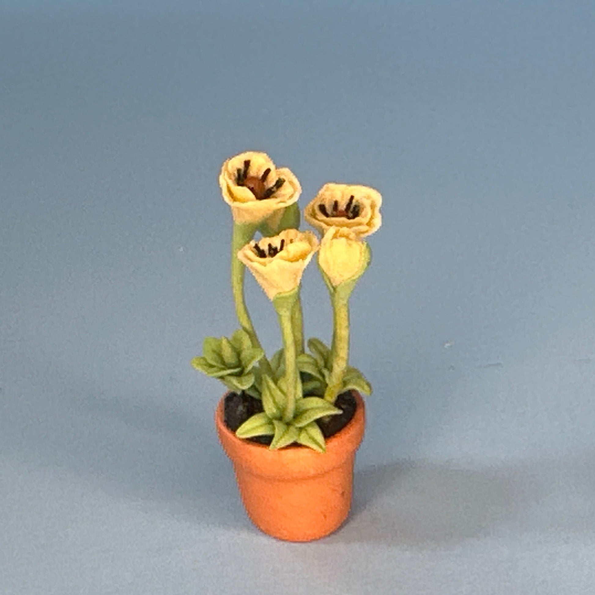 House potted plant pot for dollhouse miniature 1:12 scale Calla Lilies