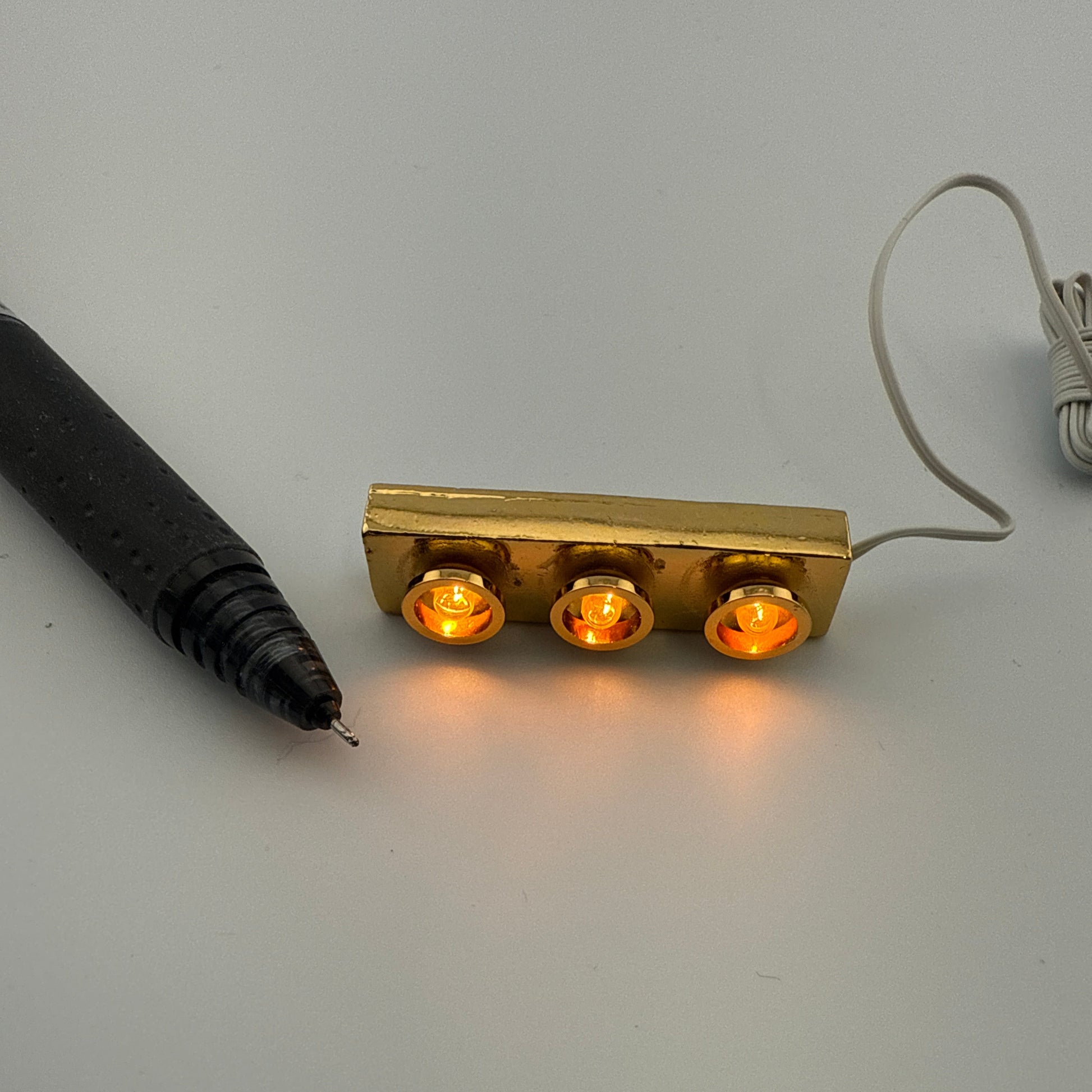 This miniature 12v dollhouse bar light is a quality 1:12 scale lighting accessory. The mini bar light measures 5/16", whilst the shade measures 1-7/16" long
