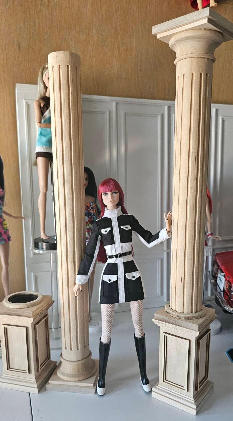 Elevate your 1:6 scale dollhouse with this large, unfinished wooden round column featuring an adjustable telescopic design from 8" to 21". Perfect for 12"H dolls, it offers versatile customization for furniture or wall panels, allowing you to craft a stunning, personalized miniature space with ease.