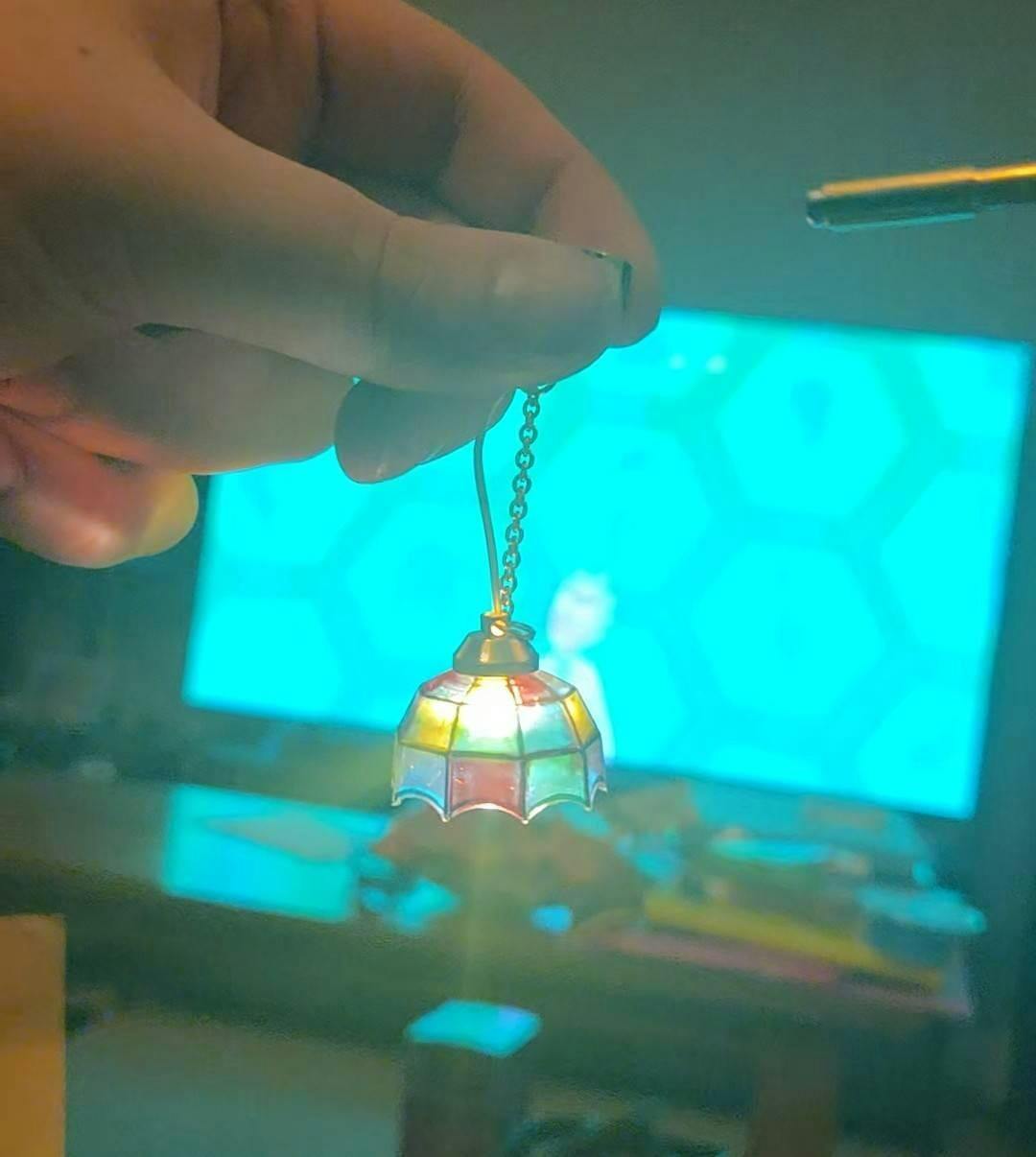 Miniature brass ceiling lamp Touchless operation with wand Tiffany colored shade LED light 1:12 scale for dollhouse No-touch No-Switch