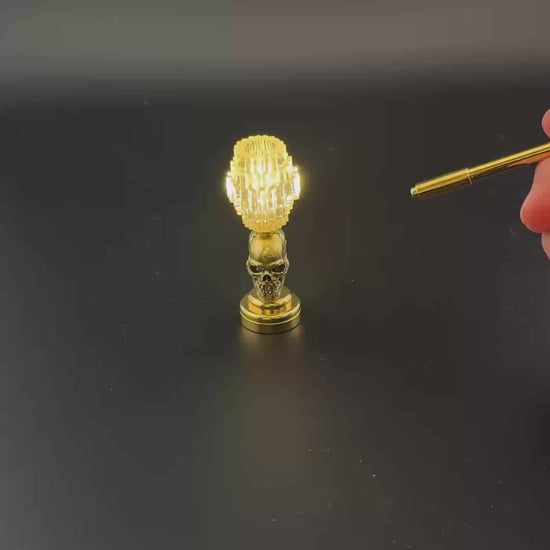 Miniature Table Lamp for Dollhouses – Metal Skull | 1:12 Scale touchless operation with Wand clear long shade LED light No-touch No-Switch tiered