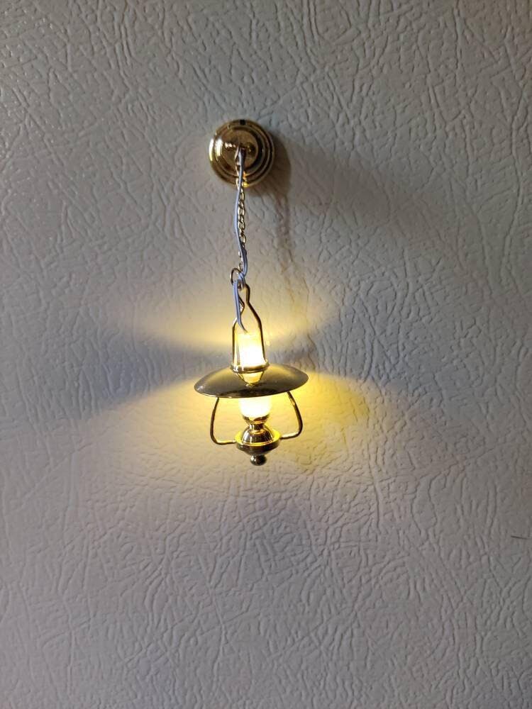 Miniature Lighting Led Light Hanging Brass Ceiling Oil Lamp with on/off switch for 1:12 scale dollhouse miniatures