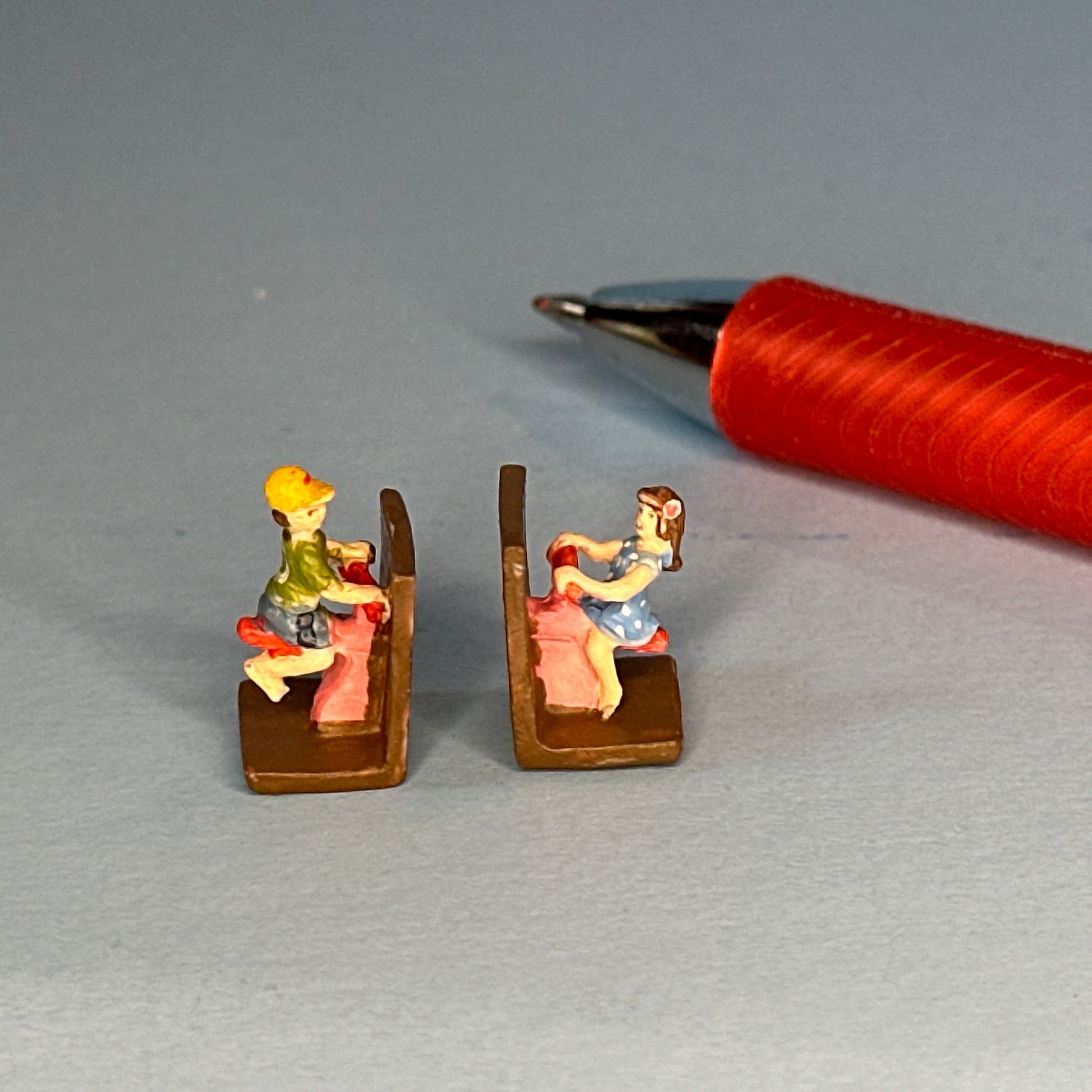 Miniature Hand-Painted Boy & Girl Bookends on Swings – 1:12 Scale