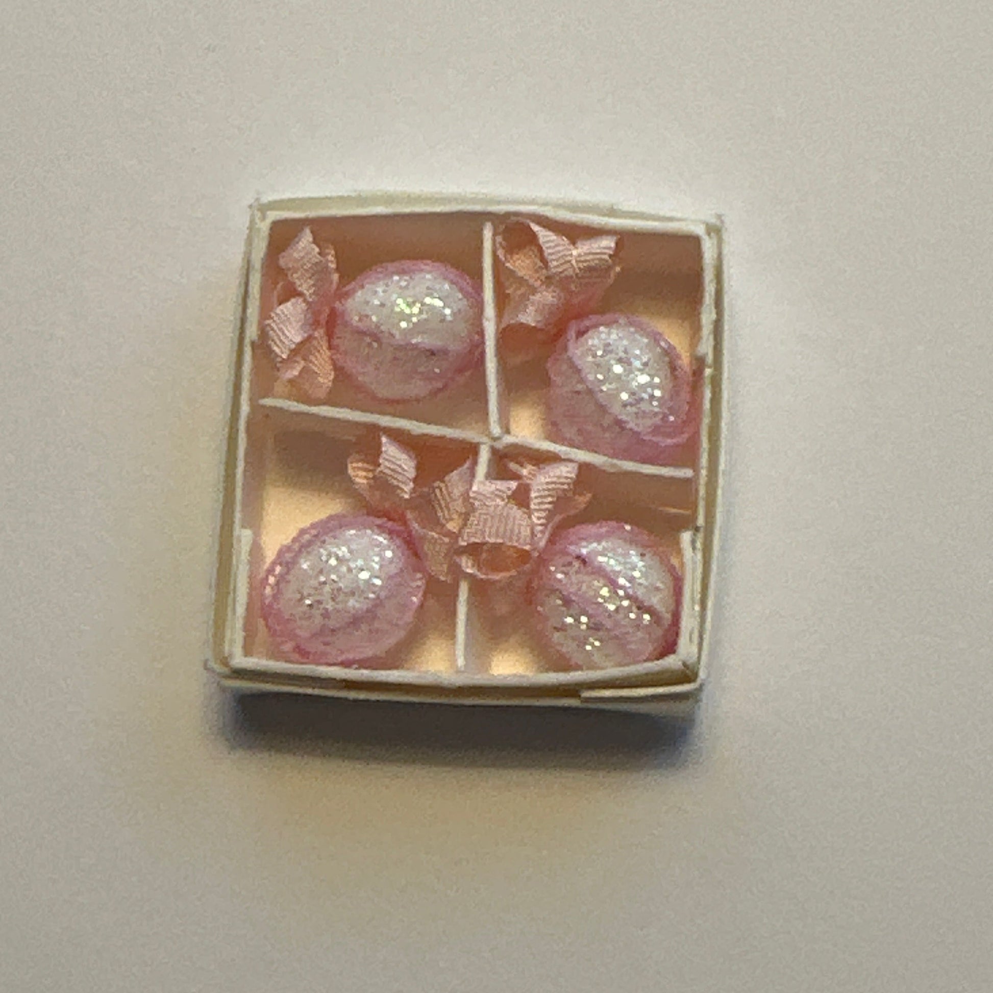 Dollhouse Miniature – Set of Four Pink Christmas Tree Baubles, Scale 1:12