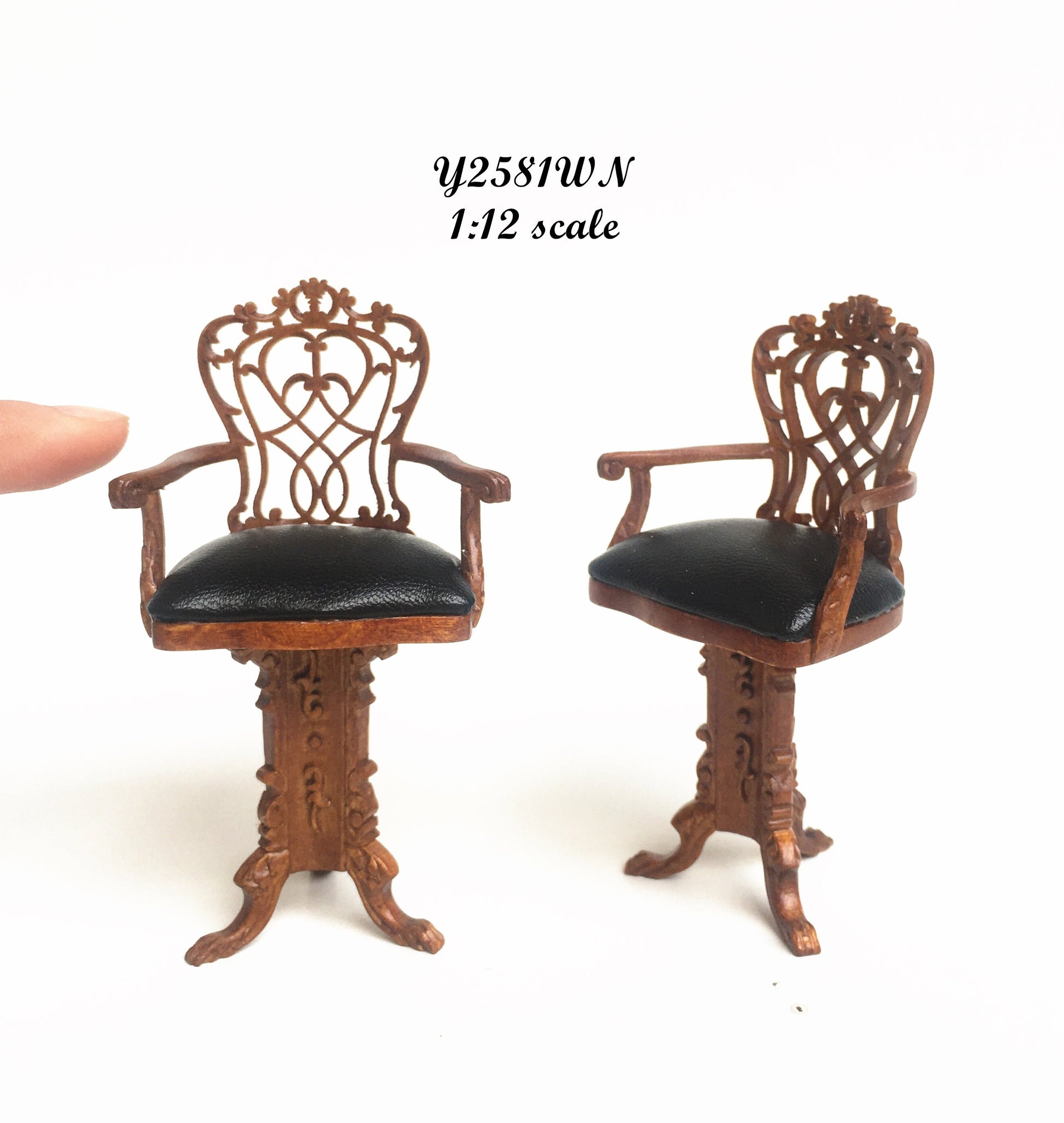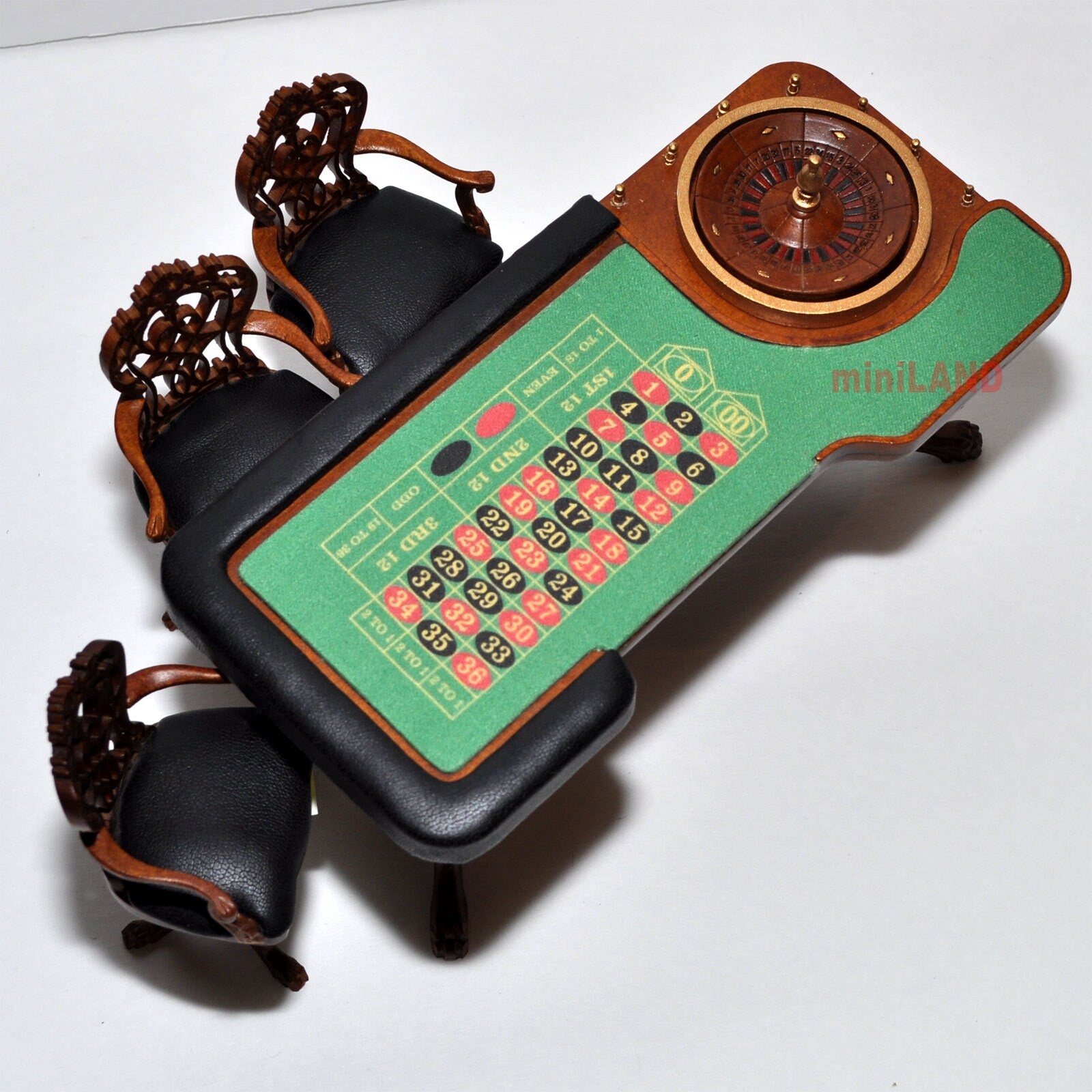 Miniature Roulette Casino Wheel play game for Dollhouse 1:12 scale bet gamble with 3 high stool chairs