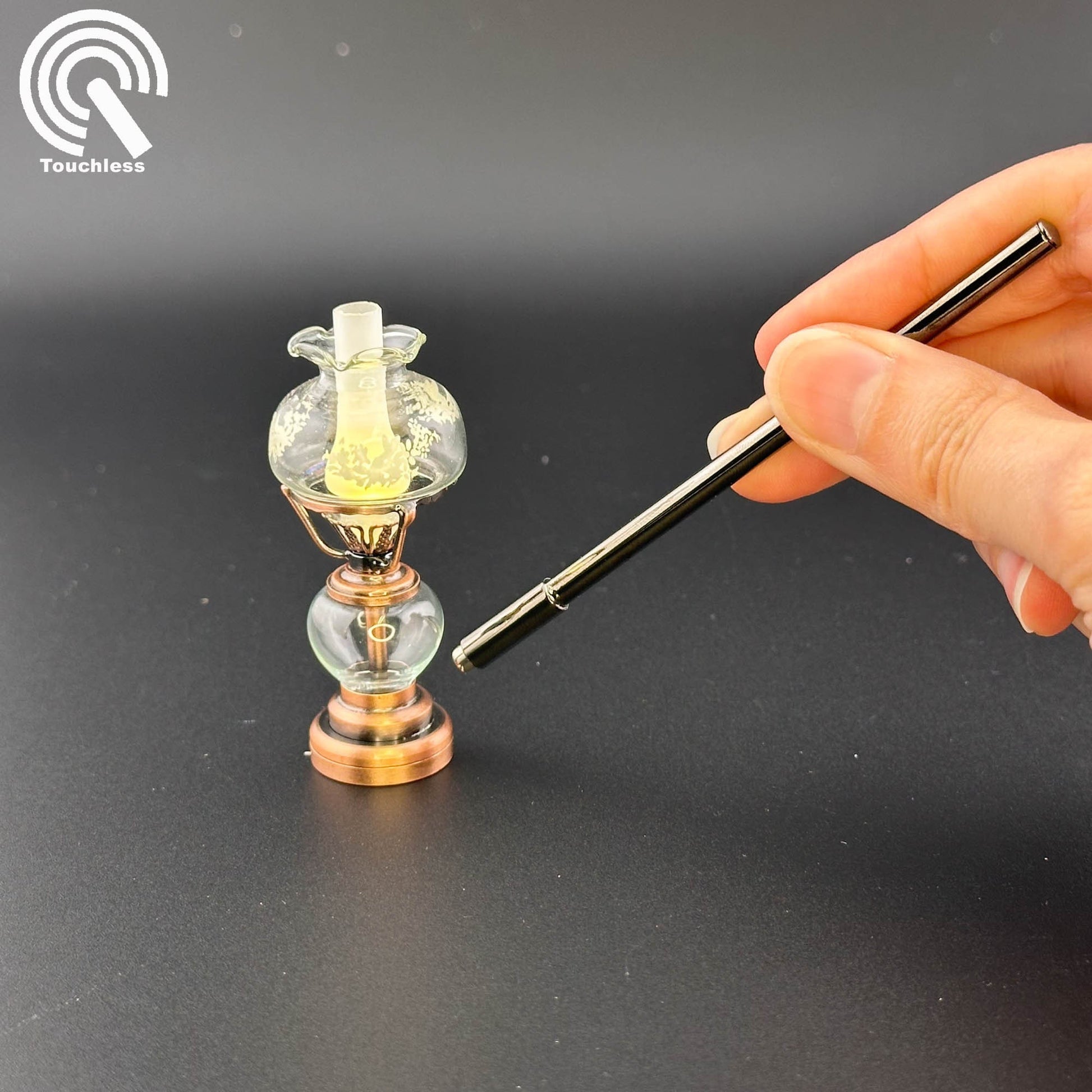 Miniature Touchless operation with Wand 1:12 standing Oil Lamp light Dollhouse No-touch No-Switch Stick Tabletop/Hanging glass lampshade