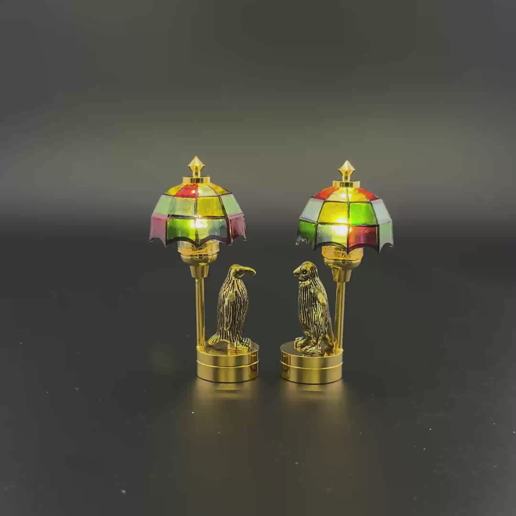 Romantic His and Hers miniature Pair of Dollhouse Lamps Touchless operation with Wand bedroom LED 1:12 Tiffany light Penguin Tiffany