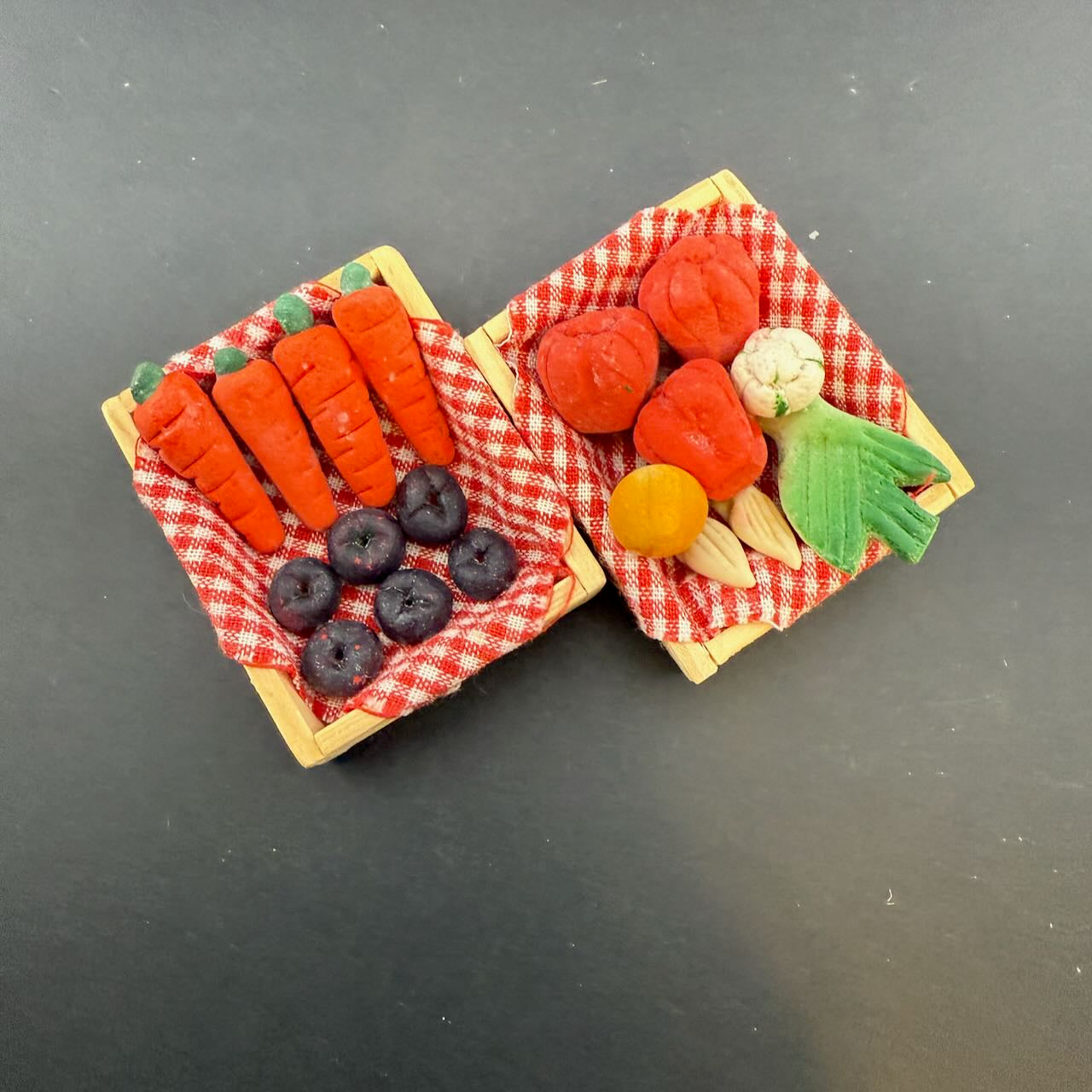 Set of 2 Economical Miniature Wooden Vegetable Crates – 1:6 Scale