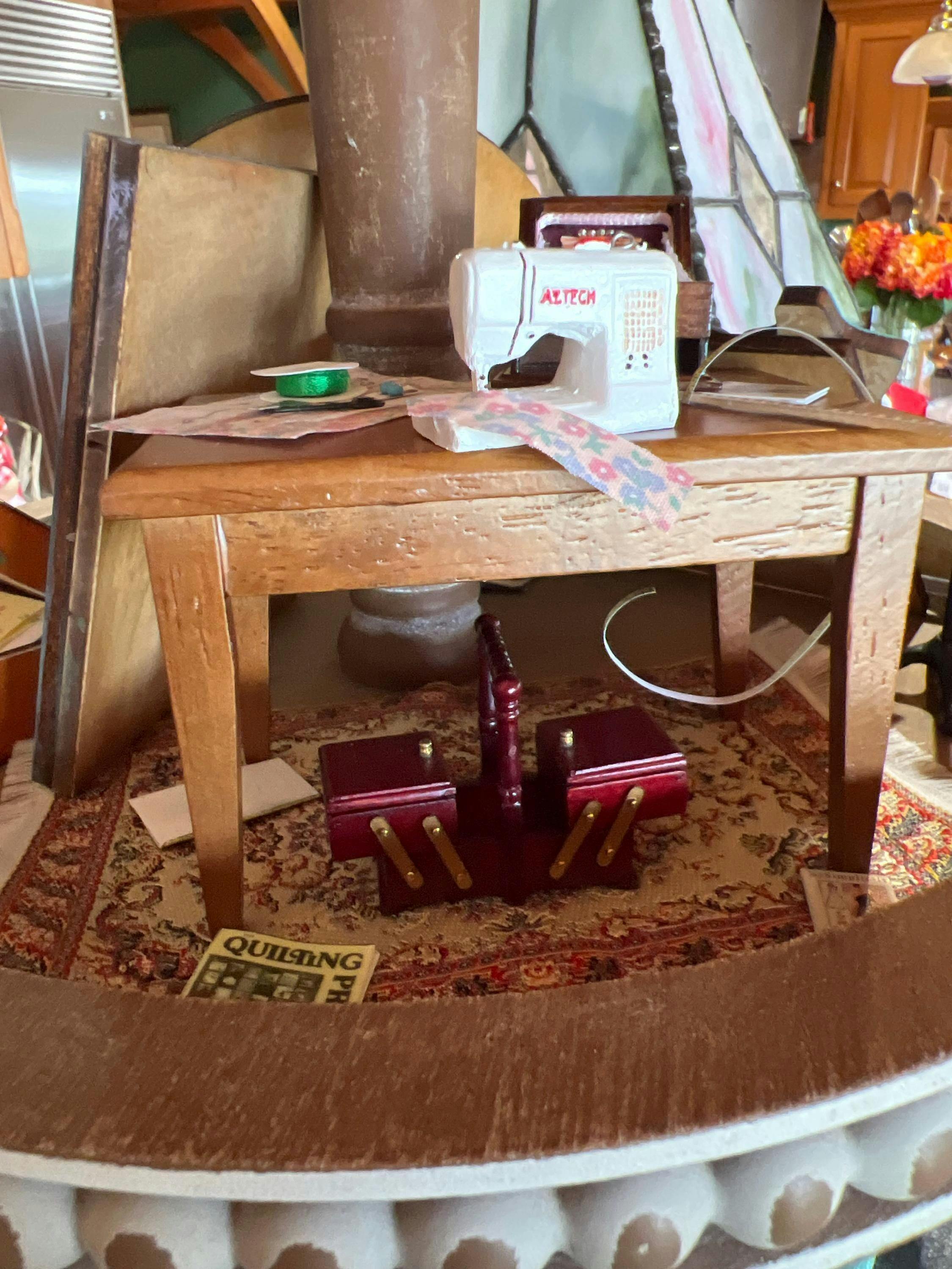 Sewing box for dollhouse miniature 1:12 scale wood handcrafted