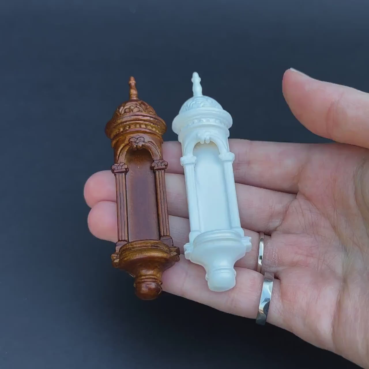 Small Carved Wall WALNUT niche for dollhouse miniatures 1:12 scale handcrafted walnut hanging shelf decorated