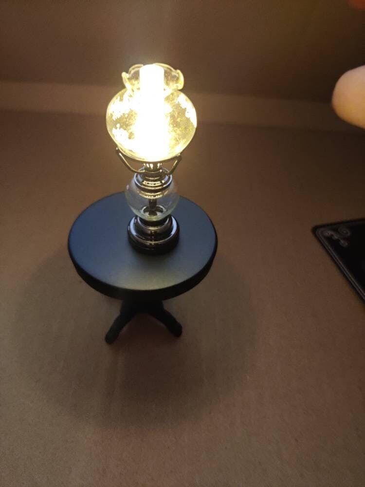 Standing oil lamp light floral glass lampshade battery operated on-off switch for 1:12 dollhouse miniature LED