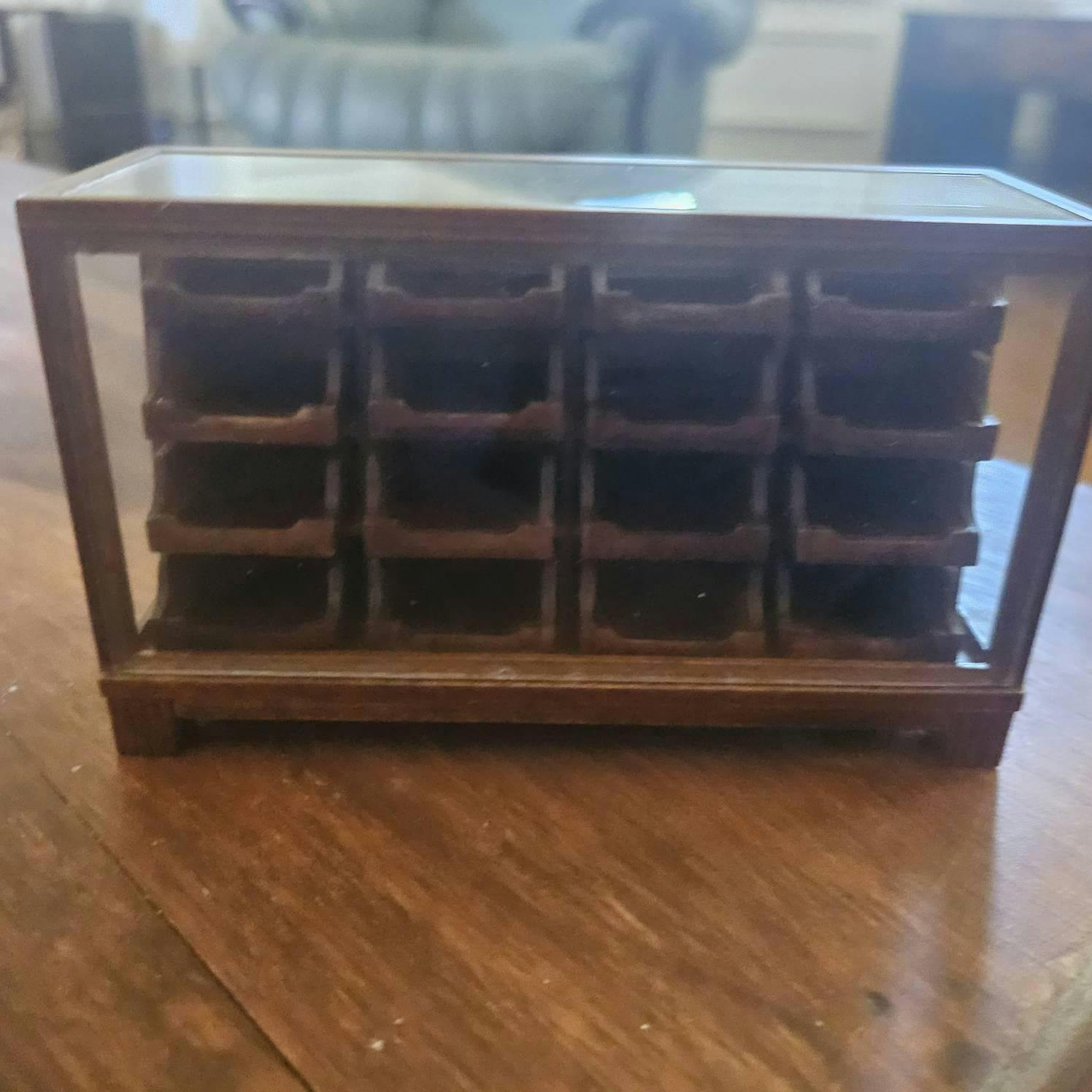 Store haberdasher counter 16 drawers unit Art Deco dollhouse miniature 1:12 scale walnut 1900-1950 V4031