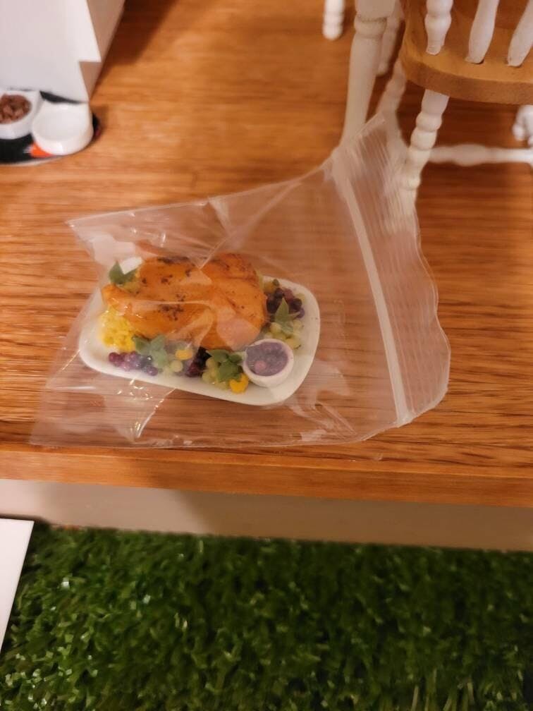 Celebrate miniature holiday gatherings with this beautifully handmade 1:12 scale turkey platter. Perfect for Thanksgiving, Christmas, or Easter dollhouse scenes, its detailed craftsmanship and festive design bring warmth and authenticity to your miniature family-style dinners, making it an essential centerpiece for seasonal displays.