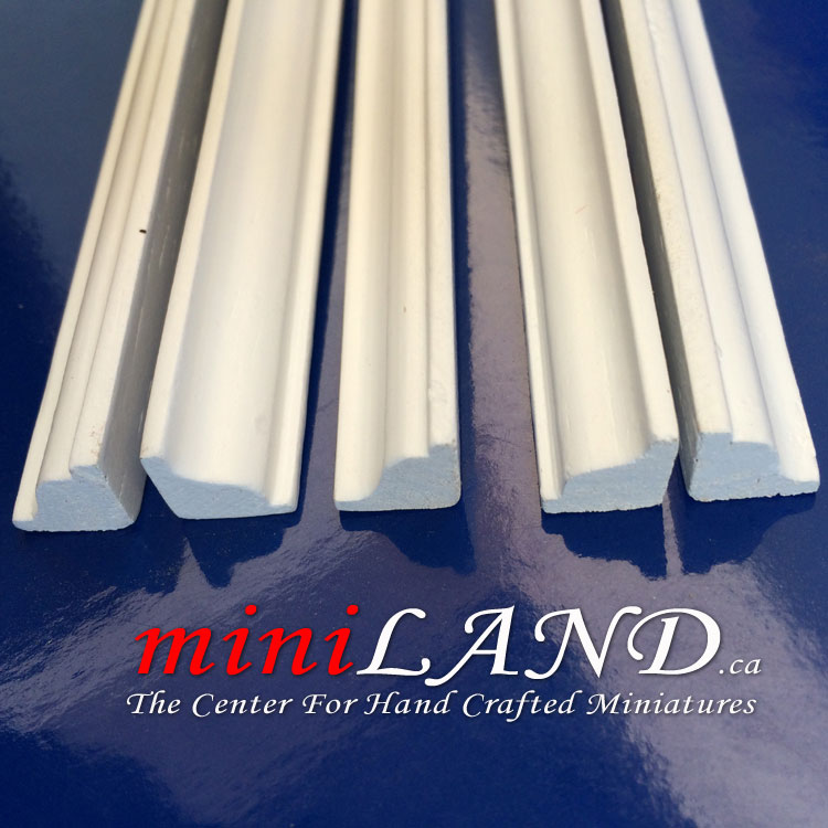 White crown molding dollhouse miniature trim 5pc, 50cm x 10x10mm hardwood oak 1:12 scale
