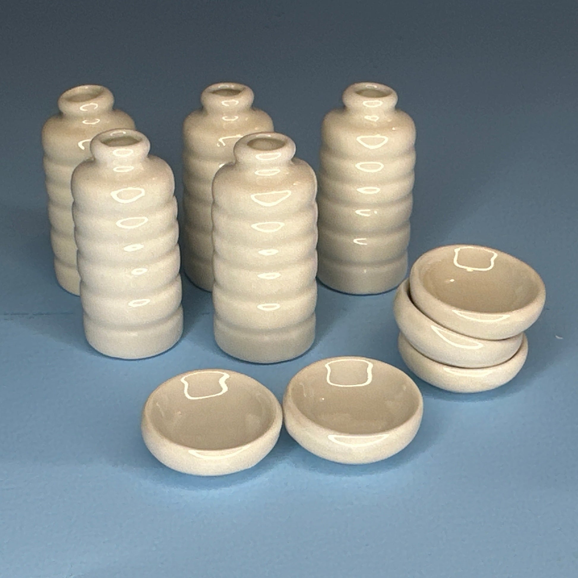 Miniature White Pots with Plates – Set of 5 for Dollhouses 1:12