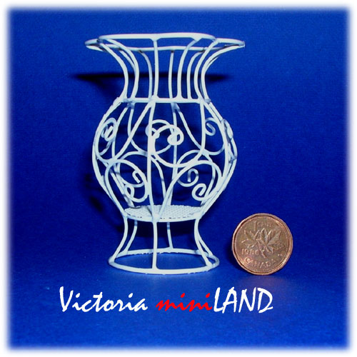 This Wire Plant Stand WH019 is the perfect addition to your 1:12 scale dollhouse, adding a touch of elegance and realism with its delicate wire design. Its sturdy construction supports miniature plants, creating a charming focal point in any room. Elevate your dollhouse décor effortlessly with this stylish and functional accessory.